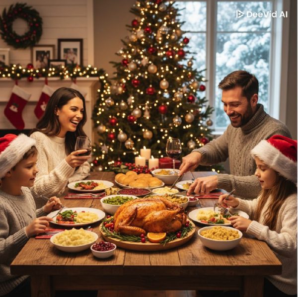 アメリカのクリスマスの過ごし方は、家族や親戚が集まり、家で七面鳥などのご馳走を食べてゆっくり過ごすのが一般的です。